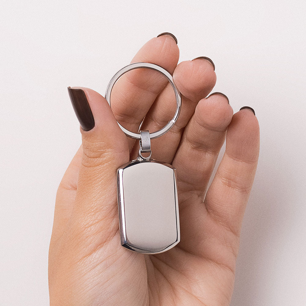 Crafted from high-quality stainless steel, this keychain is resistant to rust and wear, ensuring your personalized sentiment lasts for years to come. It’s a sophisticated accessory for keys, bags, or backpacks.